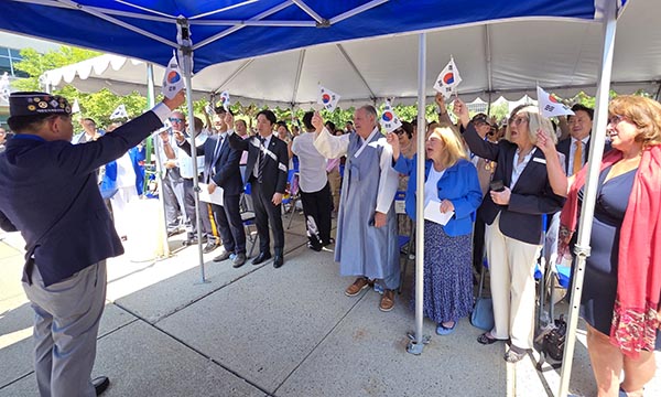 특히 한복을 차려입고 참석한 테데스코 버겐카운티장은 한국 광복 80주년을 기념하는 선포문을 발표하고 이를 김제중 뉴욕총영사관 영사에게 전달했다.