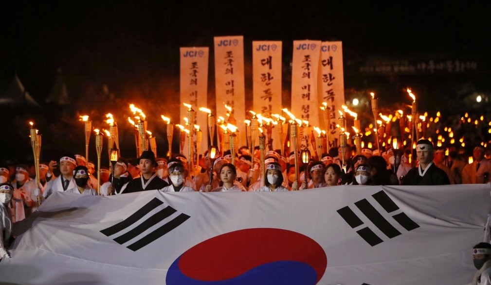 <위 사진, 지난 2023년 2월 28일 저녁   3.1운동 제104주년 기념 아우내 봉화제가 열린 충남 천안시 병천면 유관순 열사 사적지에서 참가자들이 횃불 행진을 하고 있는 모습 . 아우내 봉화제는 천안시가 아우내 만세운동의 거사를 알리기 위해 매봉산에 봉화를 올린 유관순 열사의 의거에 착안해 매년 2월 말일 거행한다. 당시 횃불 행진은 코로나19 여파로 4년 만에 열렸다. 3.1운동의 의미를 다시금 생각하는 국민이 많다는 것은 매우 긍정적인 일이다.>
