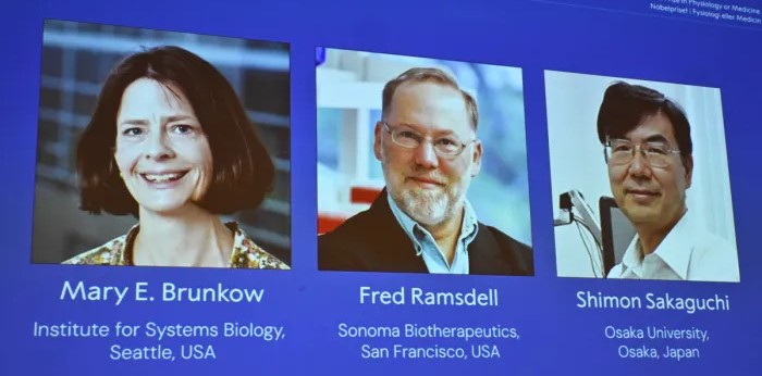 스웨덴 카롤린스카연구소 노벨위원회는 6일(현지시간) 사카구치 시몬(74·일본) 오사카대 면역학 프런티어 연구센터 교수와 메리 브렁코 시애틀 시스템생물학연구소 선임 프로그램 매니저(64·미국), 프레드 램즈델(65·미국) 소노마 바이오테라퓨틱스 과학 고문을 올해 노벨생리의학상 공동 수상자로 선정했다고 발표했다.