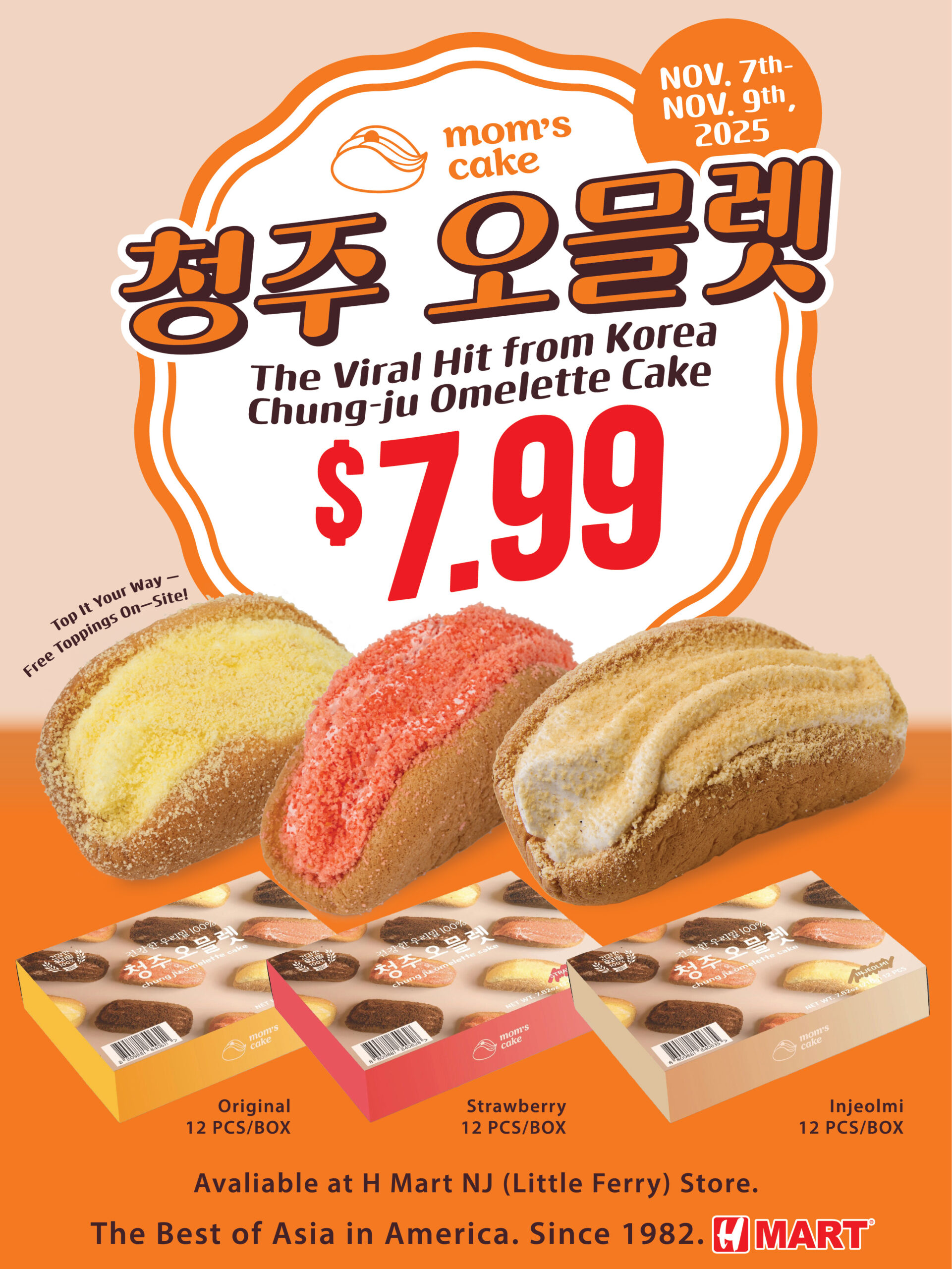 미주 최대 아시안 슈퍼마켓 체인인 H 마트가 한국의 인기 디저트 브랜드 ‘맘스케익 청주 오믈렛’ 특별 팝업스토어를 뉴저지 지역 H 마트 리틀페리점에서 진행한다.