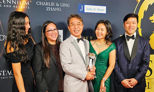 H마트는 1982년 뉴욕시 퀸즈에 한아름 마트로 처음 문을 연 이래 성장을 거듭해 오늘날과 같은 체인을 갖추었다(미전역 100여개 점포). 현재 본사는 뉴저지 린드허스트(Lyndhurst)에 있다. 2천년대 들어 한류와 K 푸드 붐에 힘입어 더욱 크게 성장했는데 2024년 기준 연 매출 20억 달러(뉴욕 타임즈 보도) 에 달한다. 이같은 성장세를 이어가면서 체인은 미주 각지의 명소로 꼽히면서 K 푸드 셰계화에 앞장서 나가고 있다. 위 사진은 권일연 대표와 부인 권예진 여사(바로 오른쪽)가 아들 및 두 딸과 함께 시상식에서 환하게 웃고 있는 모습.