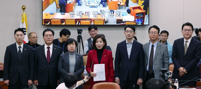 같은 당 곽규택 의원은 “검찰이 항소를 포기하도록 법무부 장관이 불법적인 지시했다는 것이 다 확인된 사항”이라며 “안건을 정하지도 않은 상태에서 의사진행발언 몇 명 하는 것을 듣자고 회의를 하는 게 제정신인가”라고 말했다.