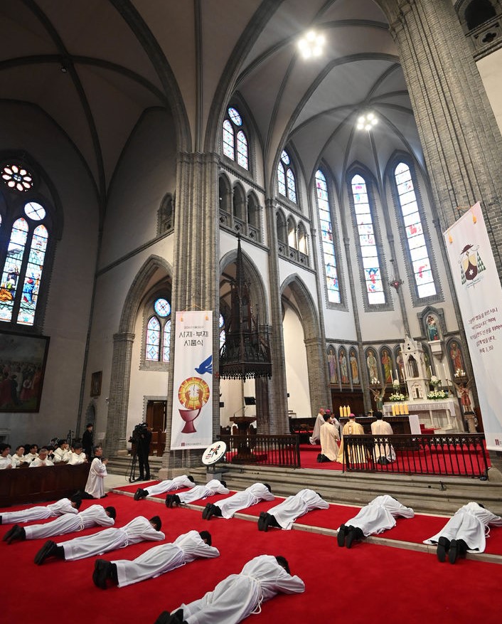 사제 서품식 전날인 5일에는 명동성당에서 부제 서품식이 거행돼 부제 수품자 11명이 부제품을 받았다.