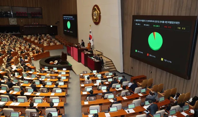 한국의 대미투자특별법이 12일 국회 본회의를 통과했다. 지난해 11월 법안이 발의된 지 106일 만이다.